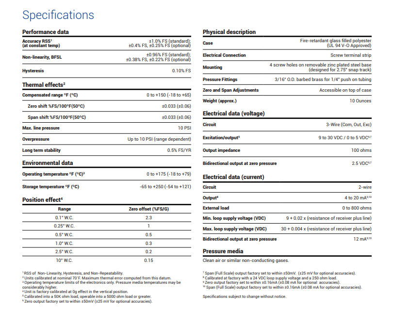 The Industry "Standard" Pressure Transducer - The 264 has been a consistent and trusted HVAC sensor for over two decades. The reputation of reliability and quality with exceptional delivery time has helped the 264 remain the trusted choice for any low differential pressure application.