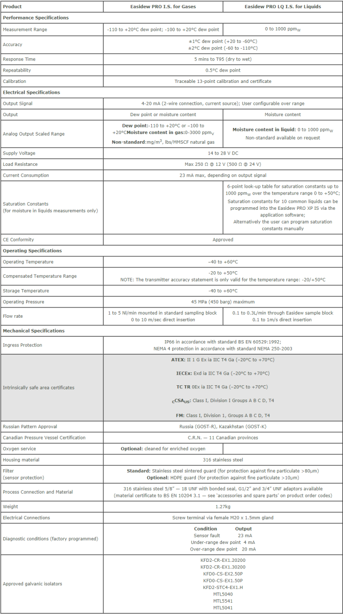 Data Sheet - Easidew PRO I.S. Dew Point Transmitter