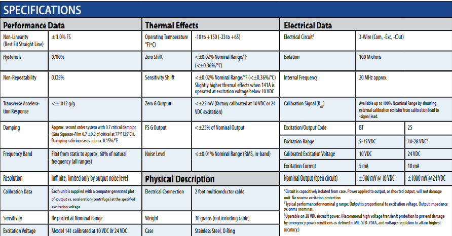 • Thumbnail of document Data Sheet - 141 Linear Accelerometer