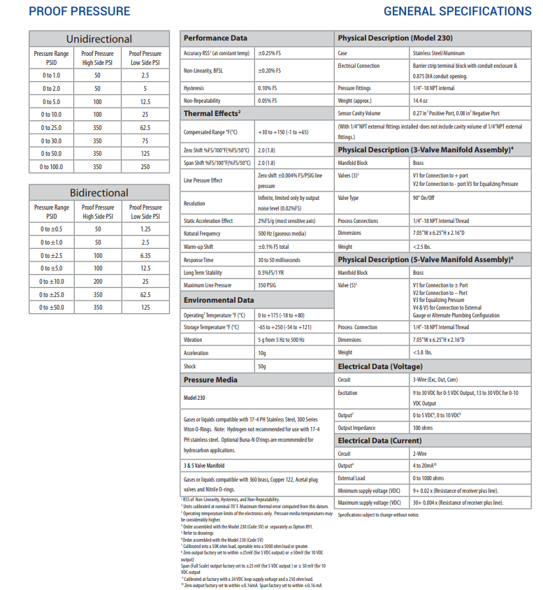 230 Wet-to-Wet Differential Pressure Transducer