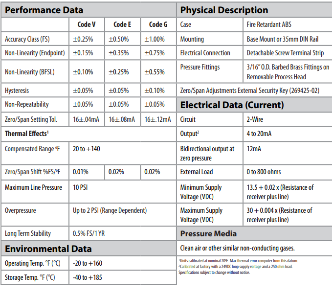 Data Sheet - 269 Low Differential Pressure Transducer