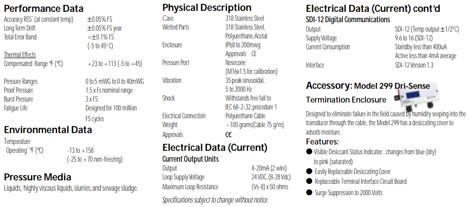 Designed to meet the rigors of long term immersibility while providing the ultimate in level sensing technology