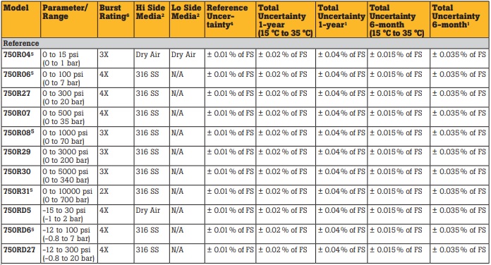 The Fluke 750P Series consists of 50 pressure modules covering pressure calibrations from 0 - 1 in H20 - 10,000 PSI (2.5 mBar to 690 bar). This series of pressure modules are easy to use. To measure pressure, connect the pressure module to a pressure source or hand pump and then connect the pressure module cable to the calibrator. Apply pressure from the pressure source and it is displayed digitally on the calibrator. At the touch of a button, the pressure may be displayed in up to 11 different engineering units. When used with the 750 Series Documenting Process Calibrators, pressure readings can be date/time stamped and stored electronically for later retrieval. This saves time, eliminates errors, and supports compliance with quality standards and regulations.