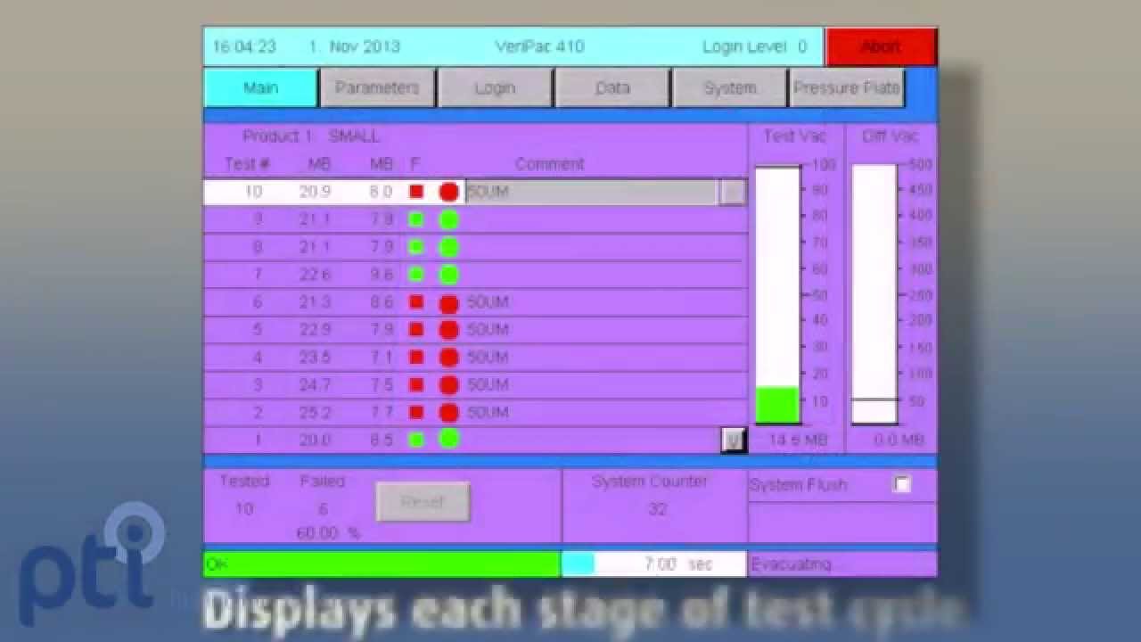 Multi-cavity blister packs and low head space packaging use a variety of test methods to determine package integrity, with most being destructive, subjective, and unreliable. The VeriPac 410 utilizes a combination of vacuum decay technology and differential force measurement to identify defective packages. Depending on the package specifications, the 410 provides the capability to test multiple packages in a single test cycle. The VeriPac 410 also identifies which package or blister cavity is defective. Test results are quantitative and provide operators with a definitive pass/fail result. Package quality assurance is achieved by deploying accurate, reliable, non-destructive inspection methods that remove subjectivity from the testing process. The VeriPac 410 allows tested product to be returned to the production line and eliminates the cost and waste associated with destructive leak test methods. The 410 addresses all issues associated with low volume flexible and semi-flexible package leak testing. The ROI for the VeriPac 410 makes this a powerful solution for the pharmaceutical industry